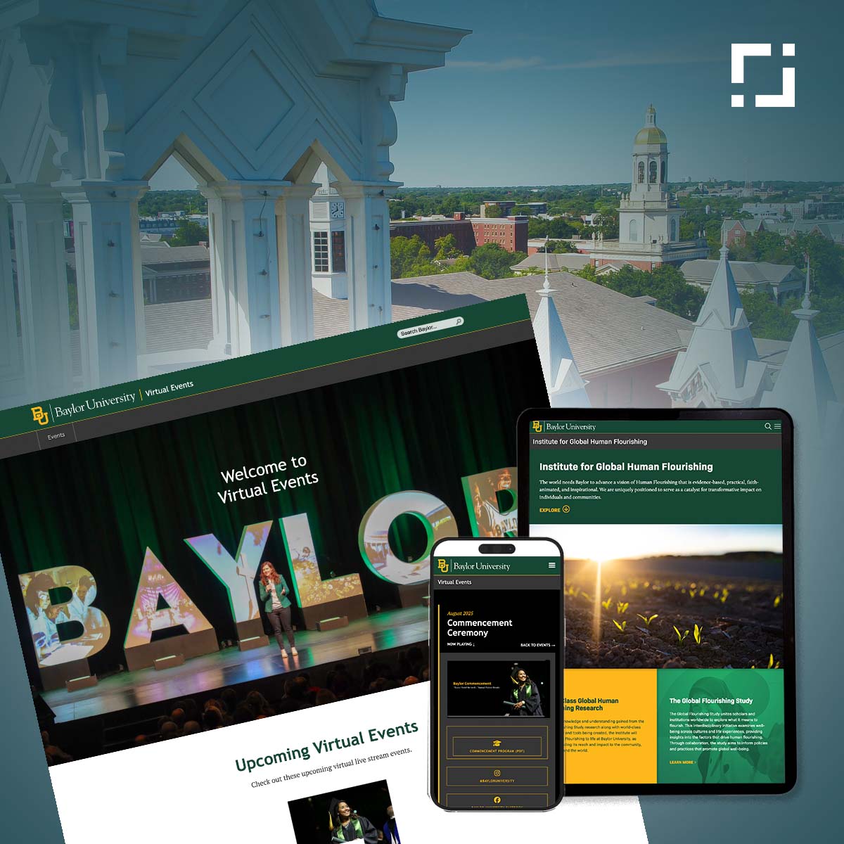 This university website design included extensive support for virtual event delivery as well as academic unit website design and ongoing site management. The work focused on creating reliable, user-friendly digital experiences that support large-scale online events, conferences, and institutional programming while maintaining consistency with Baylor’s brand and accessibility standards. In addition, multiple academic unit websites were designed and managed to ensure clear navigation, accurate content structure, and long-term scalability. Together, these efforts support Baylor University’s digital ecosystem by strengthening engagement, improving usability, and enabling seamless communication across academic, administrative, and public-facing initiatives.