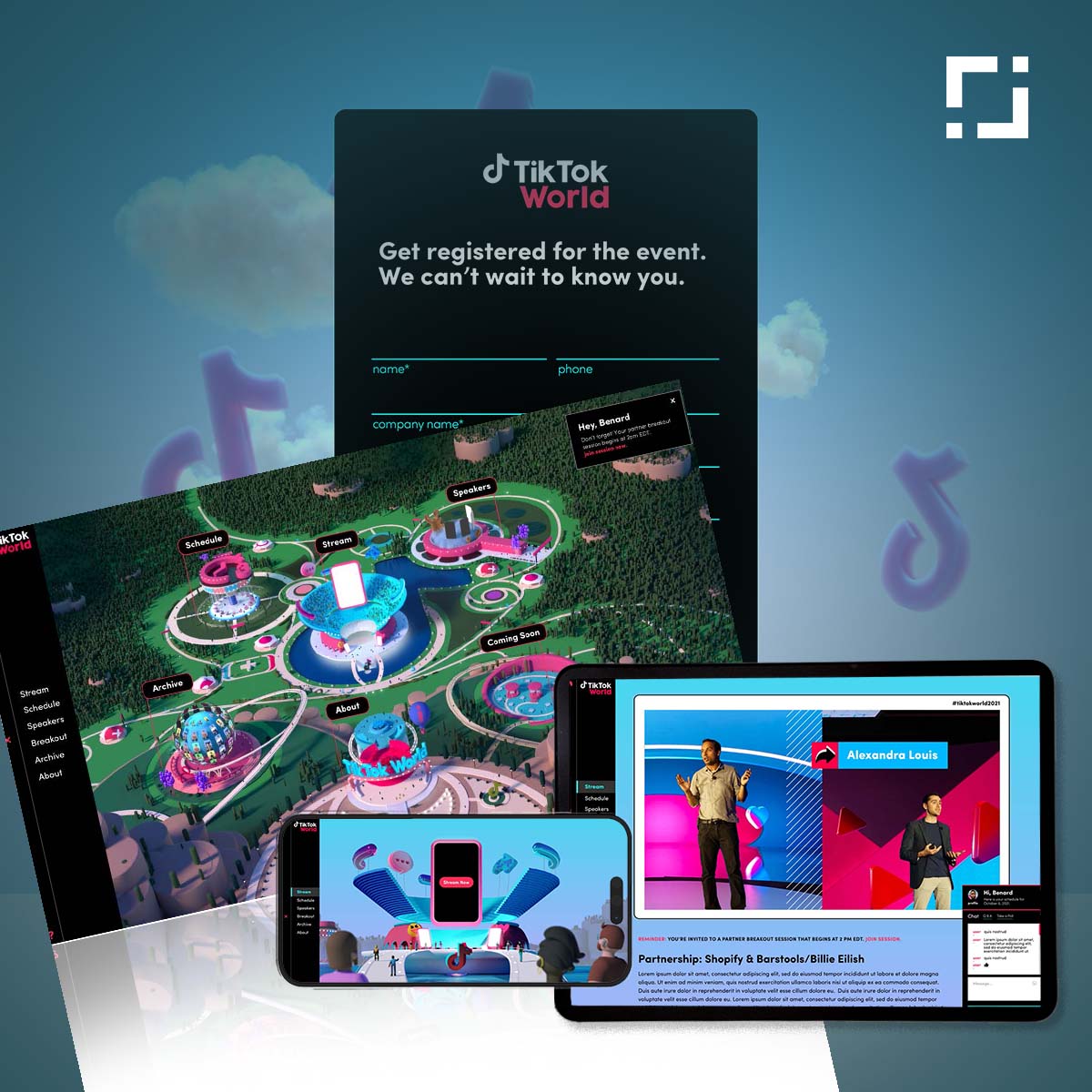 This global creator event website design – TikTok for Business project centered on building a dynamic, scalable platform for a worldwide creator meeting and virtual event. The website was designed to showcase event programming, highlight creator impact, and provide a polished digital hub for a global audience. The final result is a modern event website that enhances user experience, supports international participation, and reinforces TikTok for Business as a leader in creator-driven innovation and global digital experiences.